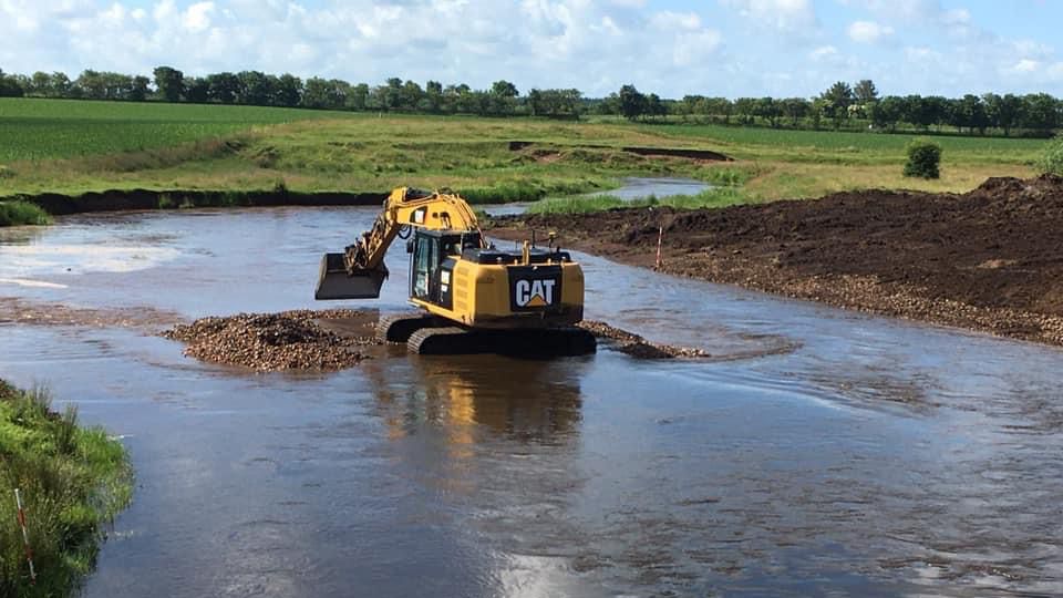 Vi udfører også opgaver inden for naturgenopretning og arbejde i det åbne land – blandt andet genslyngning af vandløb og åer. Her kombinerer vi store, moderne maskiner med erfaring og respekt for landskab, vand og natur, så funktion, holdbarhed og helhed går hånd i hånd.